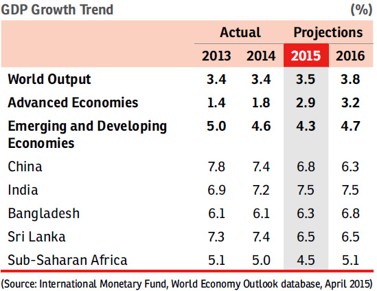With regaining political stability and with a renewed focus on growth, Bangladesh is estimated to have grown its GDP by 6.1% in 2014. The country’s economy is expected to accelerate its growth to 6.3% in 2015. Remittances are expected to finance higher domestic consumption, while investments, especially in infrastructure will support strong long-term aggregate demand. Sri Lanka too seems to have recovered from the turmoil witnessed in the past few years, and has stepped up its efforts to attract foreign investments, improve infrastructure and promote all-round socio-economic development. The Sri Lankan economy is thus expected to continue its strong growth, at 6.5% in 2015, albeit marginally lower than the estimate of 7.4% in the past fiscal.