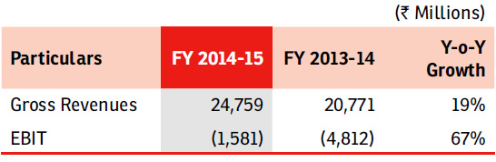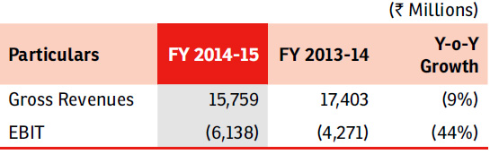 to the previous year. EBIT losses for the year reported at ` 6,138 Mn, compared to a loss of ` 4,271 Mn in the previous