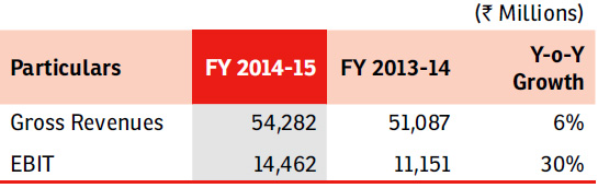 The Company served a customer base of 10.1 Mn on its Direct-to-Home platform (Airtel digital TV), as on March 31, 2015, adding 1.1 Mn customers during the year. From the third quarter, the Company harmonised the accounting of indirect taxes in line with other segments and industry practice; such taxes were part of opex earlier and are now netted off against revenues. On a like-to-like basis the growth in revenues was 24.6%, compared to previous year.