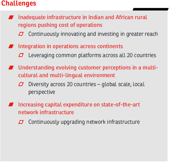 The potential risks of asset obsolescence are managed through leaner order pipelines, demand-based capacity sourcing and formal swap arrangements with vendors. In several countries, the Company is pro-actively leading the development of 3G, 4G, digital content partnerships and mobile money, among others ahead of the curve to leverage big opportunities.