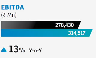 | EBITDA (before exceptional items) | ` Mn | 200,718 | 222,533 | 233,340 | 278,430 | 314,517 |