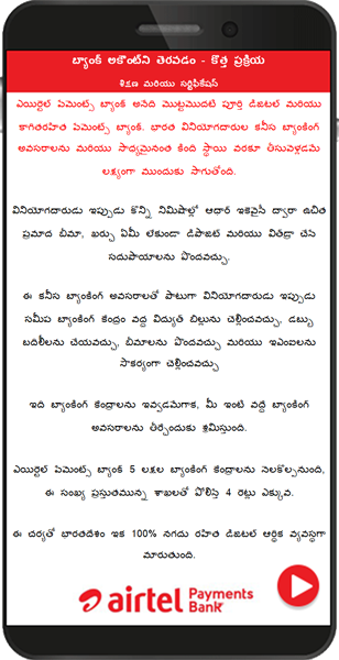 బ్యాంక్ విభాగంలో బ్యాంక్ అకౌంట్ని తెరువును నొక్కండి.