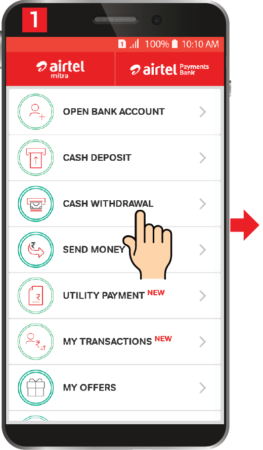 Tap on CASH WITHDRAWAL. CASH WITHDRAWAL पर Tap करें।