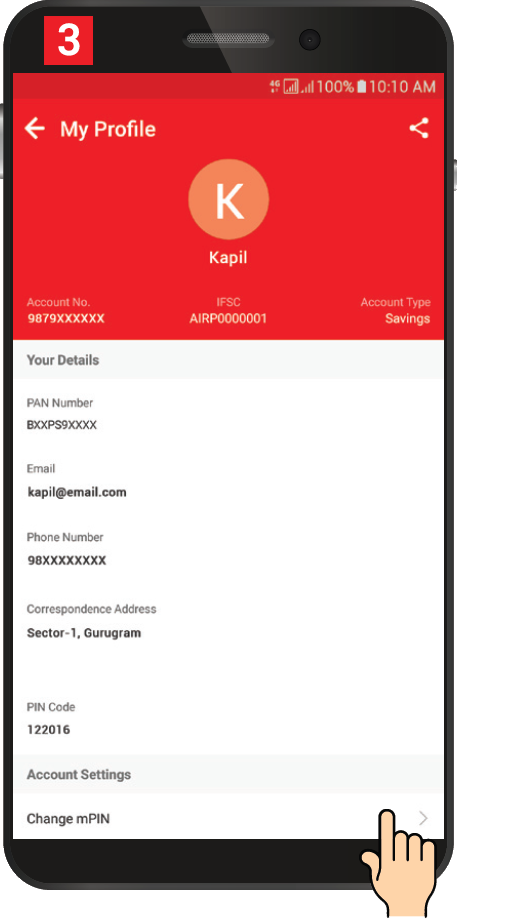 Select PAYMENTS BANK and Tap on VIEW PROFILE.