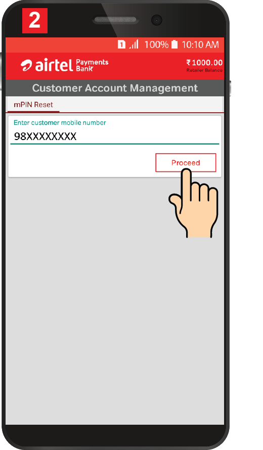 Enter customer account linked Mobile Number and Tap on Proceed.