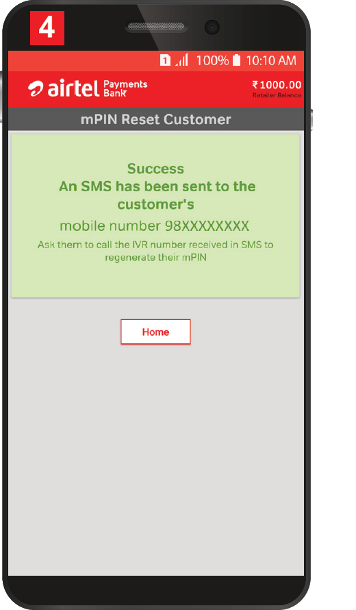 पसंदीदा नया mPIN दर्ज करें और सेन्ड बटन दबाएं।