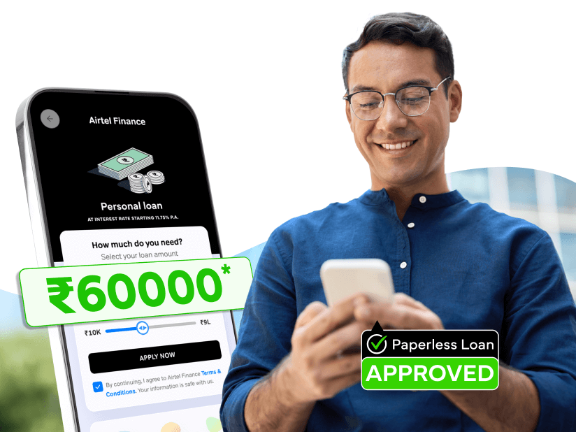 Easily avail an Airtel Finance Personal Loan of ₹60,000 online. Enjoy a quick, hassle-free application process and instant disbursal. This flexible loan is perfect for covering personal needs like urgent expenses, small purchases, or any other immediate financial requirements.