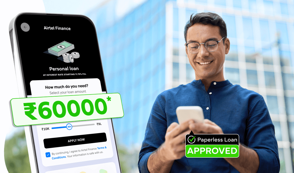 Meet all your immediate financial needs with a ₹60,000 personal loan just a click away. Enjoy easy repayments with flexible tenure options and competitive interest rates. With Airtel Personal Loan, securing a ₹60,000 loan has never been simpler!