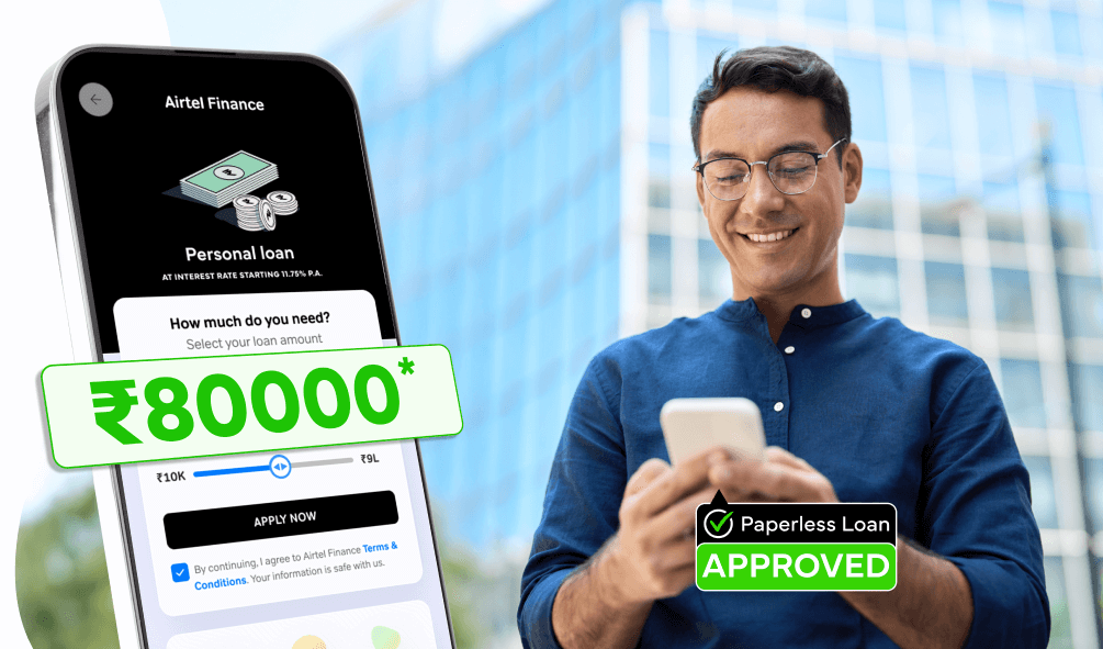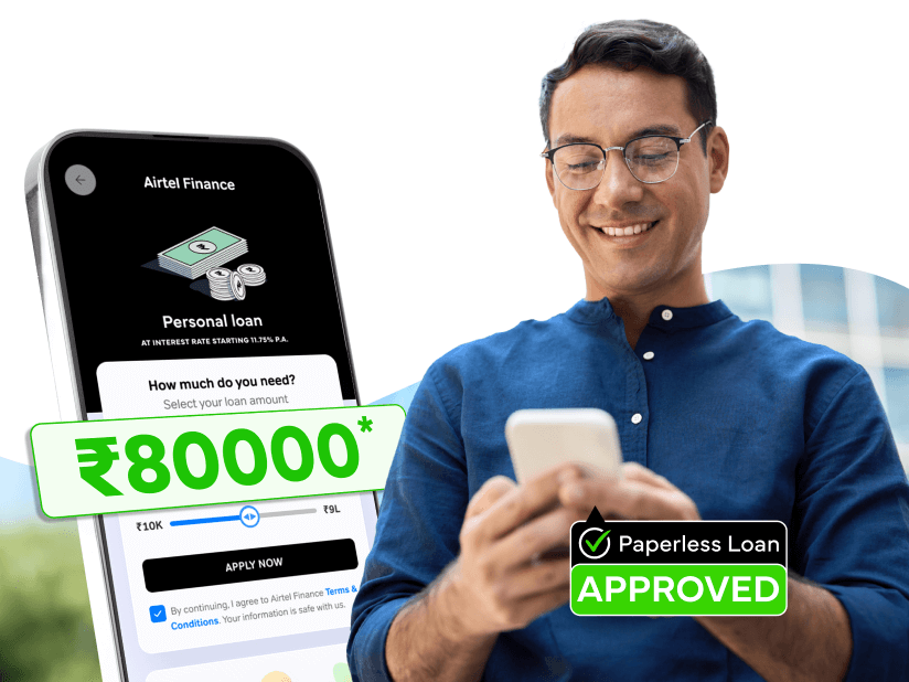 Airtel Finance offers personal loans of ₹80,000 with competitive interest rates starting at just 12.75% p.a., making it a cost-effective solution for your urgent financial needs. Enjoy the simplicity of a small loan, with flexible repayment options designed to suit your convenience!